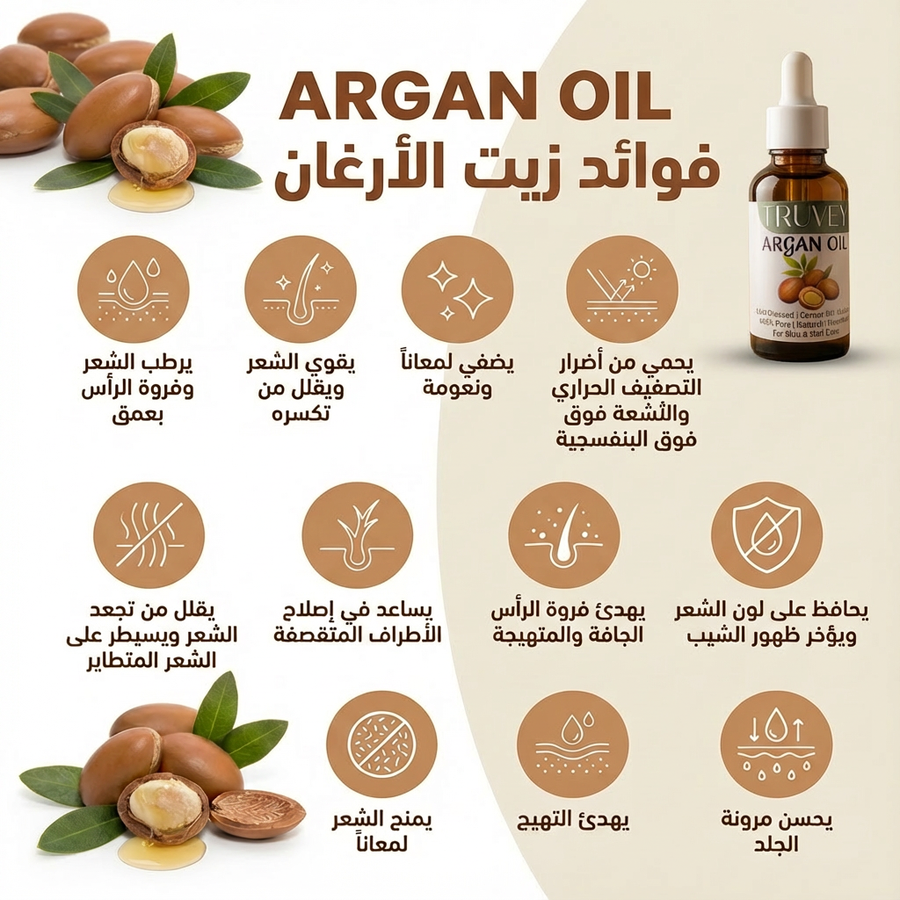 زيت حامل طبيعي ثمين، معصور على البارد من حبات الأرجان النادرة، يُعرف عالميًا بـ "الذهب السائل" لقدرته الفائقة على إصلاح الشعر التالف، ترطيبه بعمق، وحمايته من الأضرار اليومية.