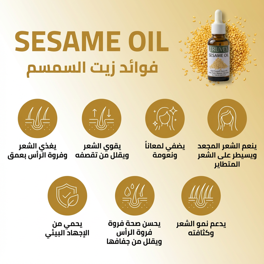 - حماية من الأكسدة: يحتوي على مضادات أكسدة فريدة (سيسامول، سيسامين) تحمي الشعر من التلف البيئي.